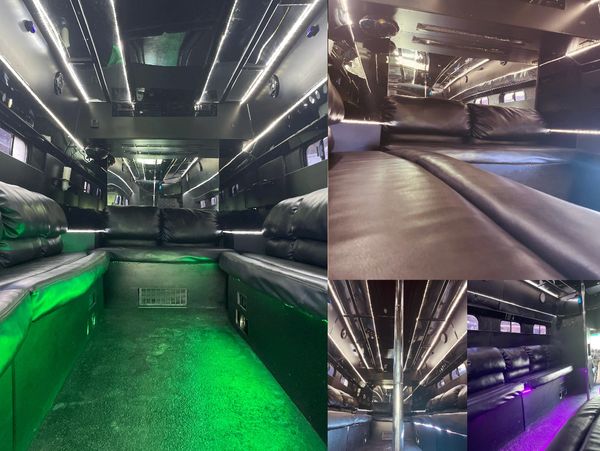 LIMO STYLE SEATING, BLUETOOTH, BUILT IN COOLERS, TV/DVD, AND A LUXURY EXPERIENCE